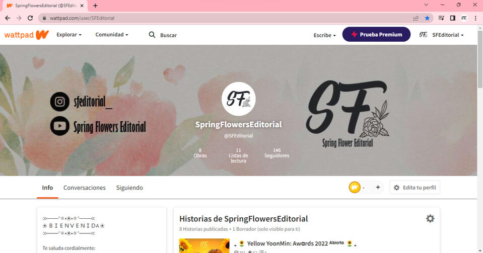 Spring Flowers Editorialnos encargamos de dar una oportunidad a todo aquel autor/a que esta en busca de más oportunidades, otorgando la ayudar de crecer esa historia que tanto esfuerzo le pones.